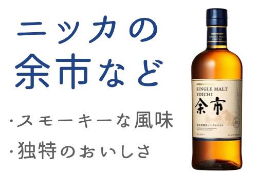 | 5 | ニッカウヰスキー シングルモルト 余市 | ![]() | 6,826円 700ml | 975 | 1,085 | スモーキー | ★☆☆ | 45% | 香りから味わいまでスモーキー 甘味やフルーツ感もひそむ力強い味わい | ノンエイジ | シングルモルトウイスキー | 日本 | ジャパニーズウイスキー |