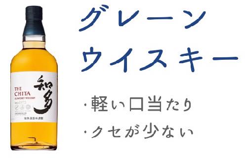 グレーンウイスキー単体で売られている種類は少なめですが、サントリーの「知多」などが有名です。風のように軽やかで、ほんのりとした甘みを楽しめます。