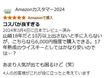 Amazonでも「この価格帯では最高のブレンデッドウィスキー」「コスパが良すぎる」など、高評価のコメントが多いです。