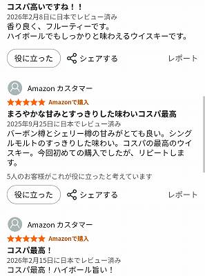 | 4 | シーバスリーガル ミズナラ12年 | ![]() | 4,381円 700ml | 626 | 2,096 | フルーティー | なし | リンゴやオレンジ、ハチミツの甘み と樽のウッディー感 | 40% | ブレンデッドウイスキー | 12年 | スコッチウイスキー |